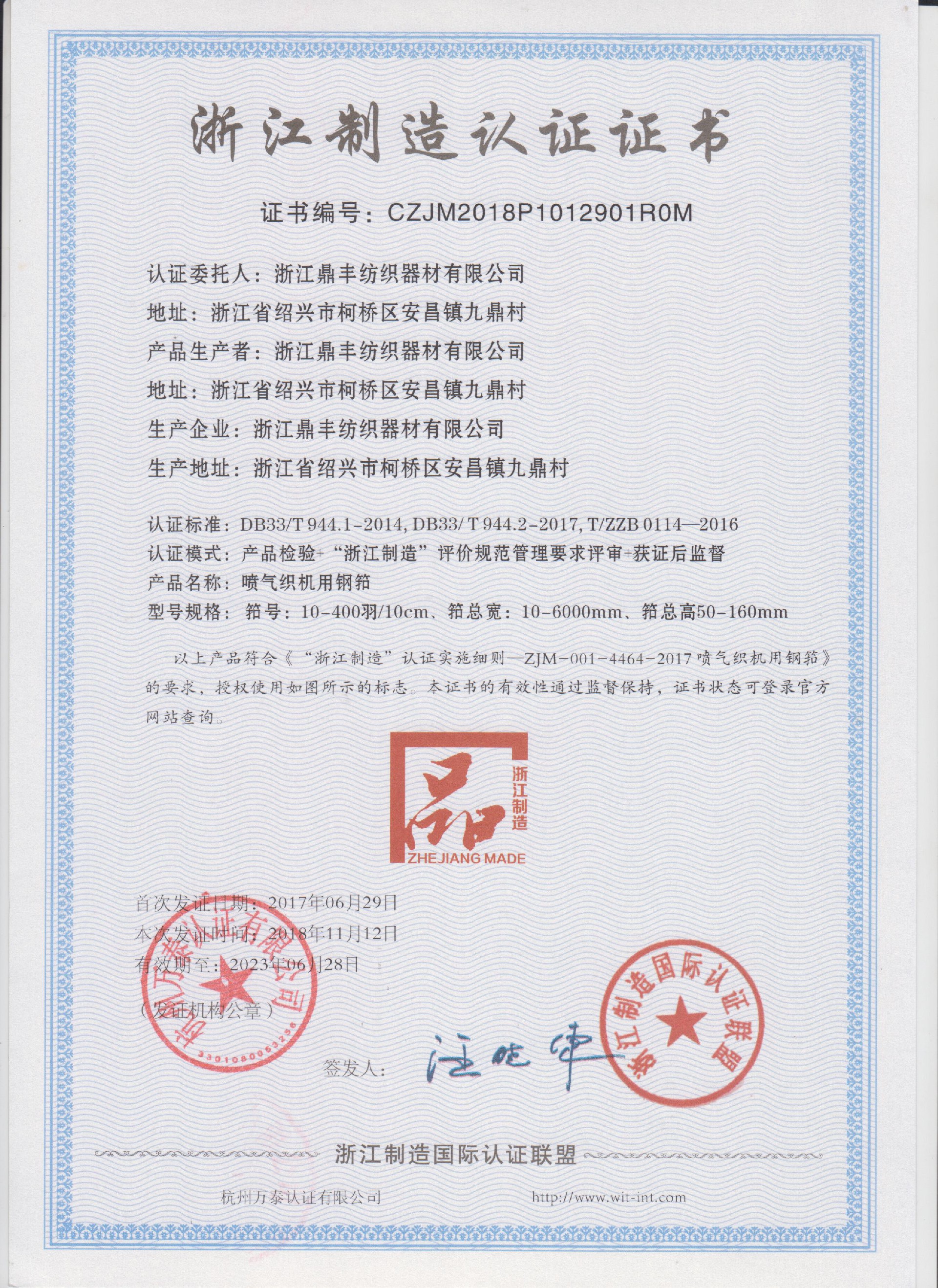 公司現(xiàn)有固定資產(chǎn)6000余萬元,員工300余人,現(xiàn)具有年產(chǎn)噴氣異型筘12萬米,劍桿筘32萬米,噴水筘5萬米,綜框20萬片,鋼片綜2億片,停經(jīng)片1.5億片, 織軸1.2萬套的生產(chǎn)能力。公司“越泉”商標(biāo)被評為“中國馳名商標(biāo)”。公司通過ISO9001 :2015國際質(zhì)量體系認(rèn)證,ISO14001:2015國際環(huán)境管理體系認(rèn)證,ISO45001:2018國際職業(yè)健康安全管理體系認(rèn)證,噴氣織機用鋼筘和織機用鋁合金綜框獲得“浙江制造”品牌認(rèn)證,公司擁有自營進出口權(quán),產(chǎn)品暢銷全國并遠(yuǎn)銷印度、巴基斯坦、土耳其、埃及、哥倫比亞、意大利等國家和地區(qū)。
